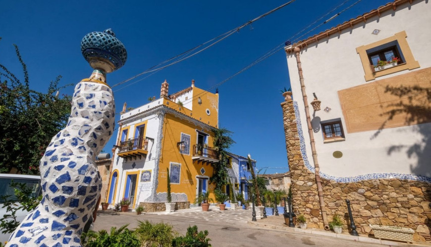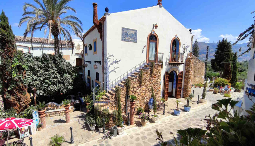 The village is famous for its artistic facades, inspired by Gaudí’s style: