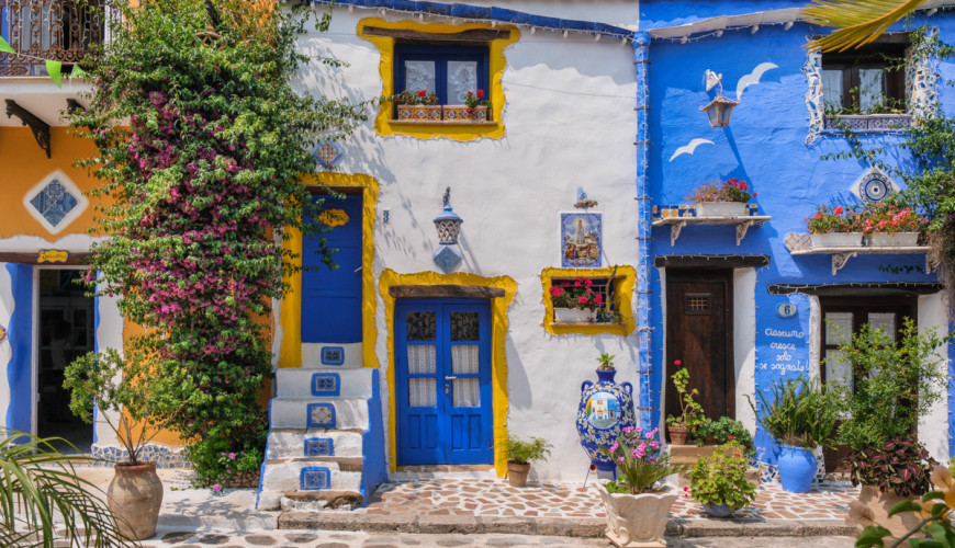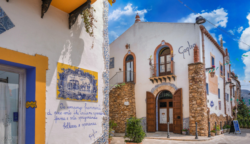 Borgo Parrini is one of the most charming and photographed places in western Sicily. Located in the territory of Partinico, just a few kilometers from Palermo, this small village is famous for its colorful houses, ceramic decorations, and artistic shapes inspired by the style of Antoni Gaudí.