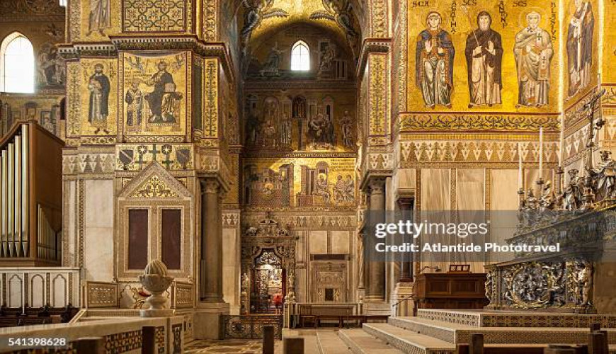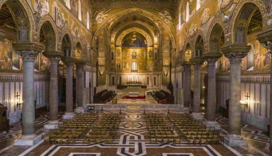 Wzniesiony z woli Wilhelma II w XII wieku kompleks monumentalny zachwyca majestatem architektury oraz niezwykłym cyklem mozaik bizantyjskich, które zdobią jego wnętrza. Ponad sześć tysięcy metrów kwadratowych złotych tesserek przedstawia sceny ze Starego i Nowego Testamentu, których kulminacją jest monumentalna postać Chrystusa Pantokratora, symbolu światła, potęgi i boskiej harmonii.